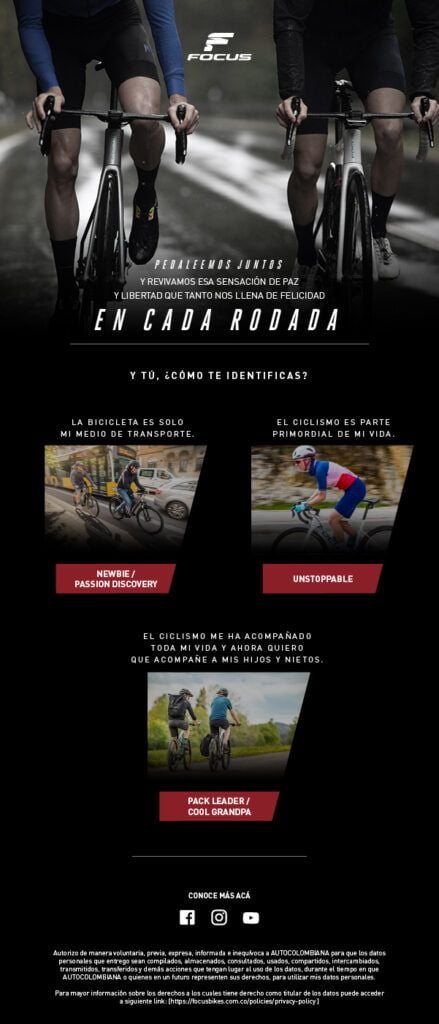 Focus Bikes es una línea de negocio del grupo Autogermana, importadores exclusivos para Colombia de la marca de bicicletas alemana ‘Focus’. Con el desarrollo de un nuevo flujo de automatización basado en la construcción de un formulario de aterrizaje que pudiera optimizar el proceso de prospección actual de la marca y tener un mayor alcance dentro de su más importante criterio de entrada: la página web; no solo se incrementaron los números de generación de leads, también el rendimiento de las tasas de apertura y clics en los emails enviados.