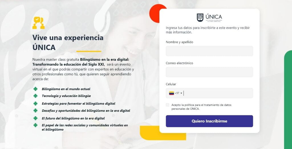 Algunos proyectos que llegan a Sí Señor Agencia involucran más de dos áreas. Este fue el caso del proyecto realizado para la Institución Universitaria Colombo Americana (ÚNICA), la cual como parte de su estrategia de paid media requería de tres landing pages asociadas a diferentes objetivos.